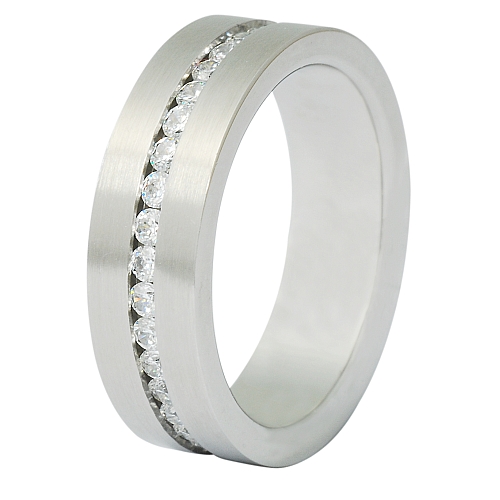 Stainless Steel Fashion Jewellery Ring with CZ all around the ring In Steel Color