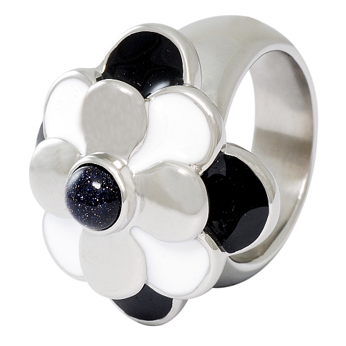 Stainless Steel Fashion Jewellery Ring Black & White enamel