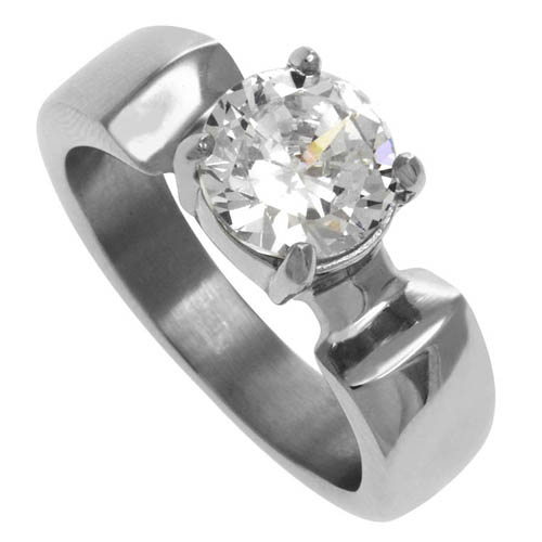 Stainless Steel Fashion Jewellery Ring With BIG CZ All in Steel Color