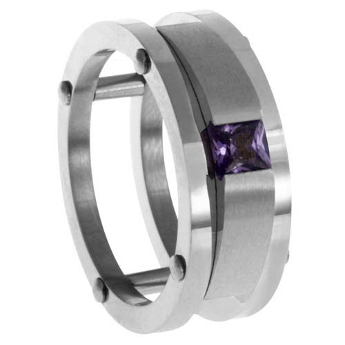 Stainless Steel Fashion Jewellery Ring With Purple CZ All in Steel color