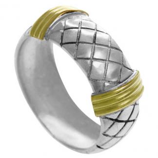 STAINLESS STEEL RING IN IPG TWO TONES WITH BLACK COLOR IN MESH PATTERN