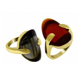 STAINLESS STEEL RING IN IPG WITH A BLACK OR RED WINE CRYSTAL STONE
