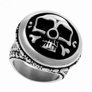 STAINLESS STEEL RING IN SHAPE OF SKULL IN S/S AND BLACK COLOR