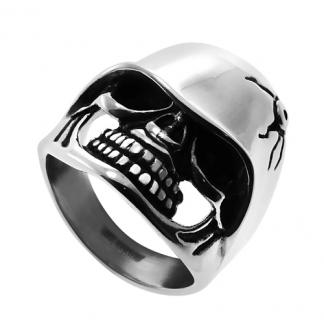 STAINLESS STEEL RING IN SHAPE OF SKULL IN ENAMEL BLACK ALL IN S/S.