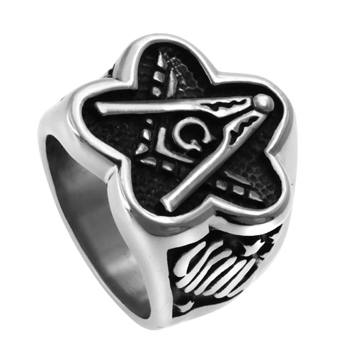 STAINLESS STEEL RING IN S/S COLOR AND BLACK COLOR OF MASOIC CODE