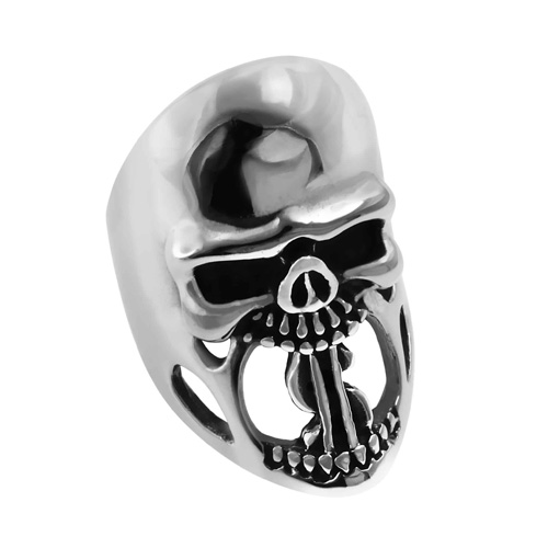 STAINLESS STEEL RING IN SHAPE OF SKULL IN ENAMEL BLACK ALL IN S/S.