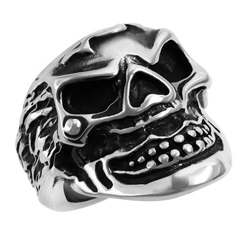 STAINLESS STEEL RING IN SHAPE OF SKULL IN ENAMEL BLACK ALL IN S/S.