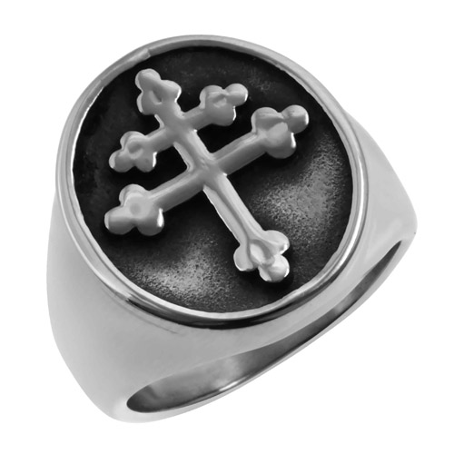 STAINLESS STEEL RING IN S/S AND BLACK COLOR OF THE CARAVACA CROSS.