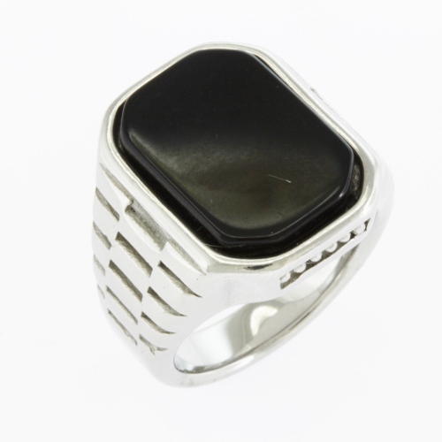 STAINLESS STEEL RING IN SS COLOR WITH ONE BLACK STONE IN RECTANGLE SHAPE