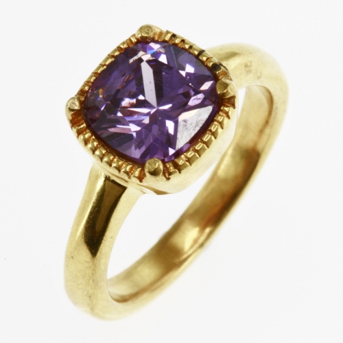 COPPER RING WITH ONE PURPLE STONE IN SQUARE SHAPE