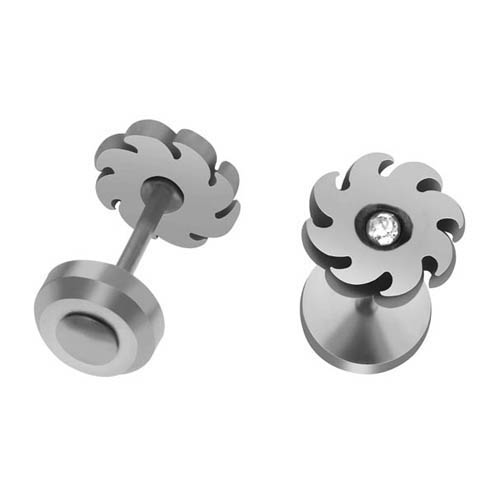 STAINLESS STEEL BABY EARRINGS ALL IN S/S COLOR IN WHIRLPOOL SHAPE WITH CZ