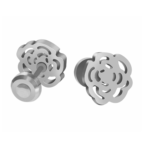 STAINLESS STEEL BABY EARRINGS ALL IN S/S COLOR IN ROSE SHAPE WITH MICRO PEARL
