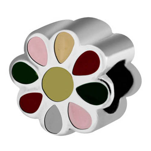 STAINLESS STEEL BEAD IN FLOWER SHAPE WITH MULTI COLOR ENAMEL ALL IN STEEL COLOR