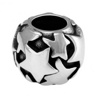 STAINLESS STEEL BEAD IN BALL SHAPE WITH STAR PATTERN ALL IN STEEL COLOR