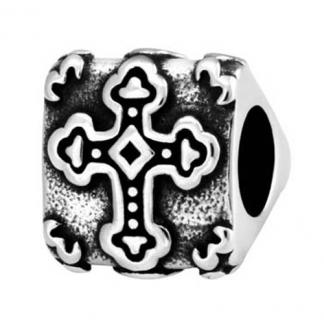 STAINLESS STEEL BEAD IN TRIANGLE SHAPE WITH CROSS BLACK OIL PAINTING ALL IN STEEL COLOR