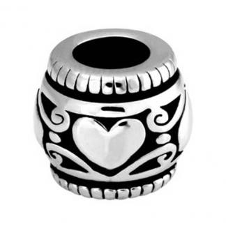 STAINLESS STEEL BEAD IN ROUND SHAPE WITH HEART BLACK OIL PAINTING ALL IN STEEL COLOR
