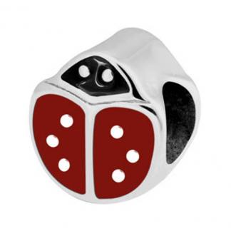 STAINLESS STEEL BEAD IN BEATTLE SHAPE WITH RED AND BLACK ENAMEL IN STEEL COLOR
