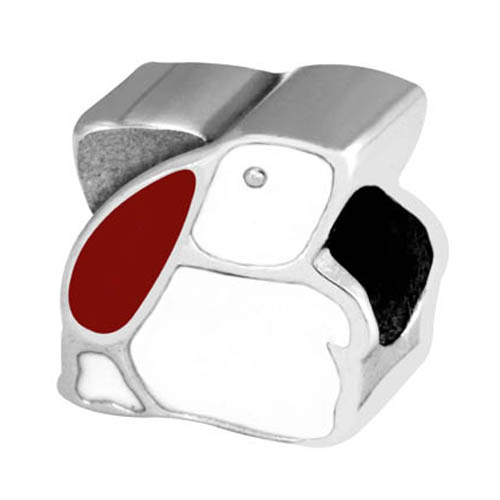 STAINLESS STEEL BEAD IN RABBIT SHAPE WITH RED AND WHITE ENAMEL IN STEEL COLOR