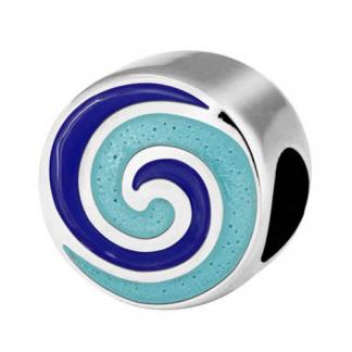 STAINLESS STEEL BEAD IN CIRCLE SHAPE WITH BLUE AND PURPLE ENAMEL IN STEEL COLOR