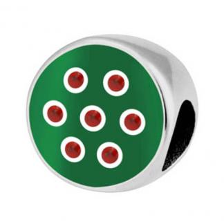 STAINLESS STEEL BEAD IN CIRCLE SHAPE WITH RED AND GREEN ENAMEL