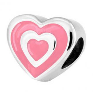 STAINLESS STEEL BEAD IN HEART SHAPE WITH PINK ENAMEL