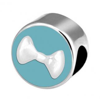 STAINLESS STEEL BEAD IN CIRCLE SHAPE WITH BOW TIE WITH BLUE ENAMEL IN STEEL COLOR
