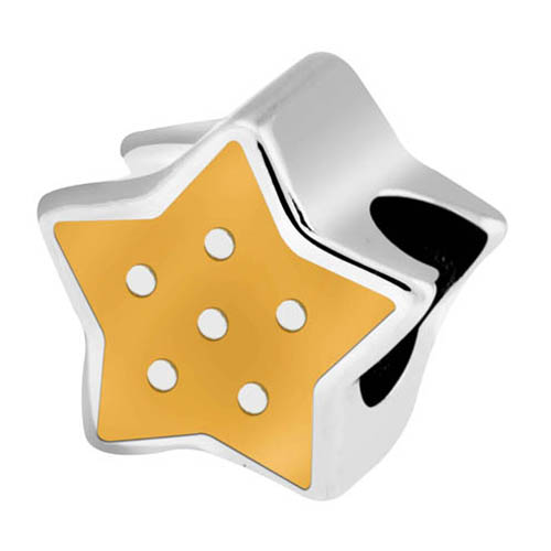 STAINLESS STEEL BEAD IN STAR SHAPE WITH ORANGE ENAMEL IN STEEL COLOR