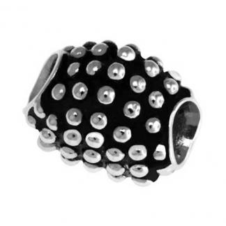 STAINLESS STEEL BEAD IN HEART SHAPE WITH MICRO BALL WITH BLACK OIL PAINTING IN STEEL COLOR