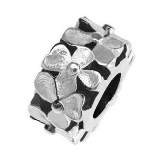 STAINLESS STEEL BEAD IN ROUND SHAPE WITH FLOWER PATTERN IN STEEL COLOR