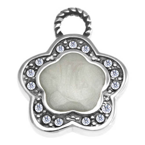 STAINLESS STEEL BEAD IN FLOWER SHAPE WITH WHITE ENAMEL AND CZ IN STEEL COLOR