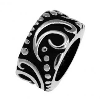 STAINLESS STEEL BEAD IN ROUND SHAPE WITH WIND PATTERN WITH BLACK OIL PAINTING IN STEEL COLOR