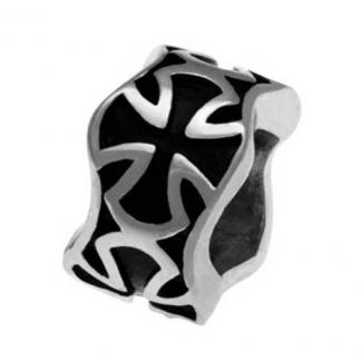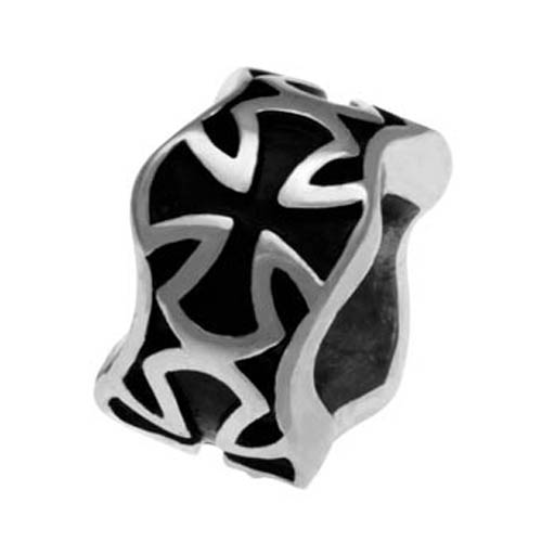 STAINLESS STEEL BEAD IN ROUND SHAPE WITH CROSS PATTERN WITH BLACK OIL PAINTING IN STEEL COLOR
