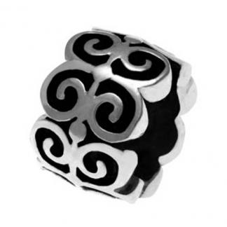 STAINLESS STEEL BEAD IN ROUND SHAPE WITH BUTTERFLY PATTERN WITH BLACK OIL PAINTING IN STEEL COLOR