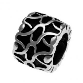 STAINLESS STEEL BEAD IN ROUND SHAPE WITH FLOWER PATTERN WITH BLACK OIL PAINTING IN STEEL COLOR