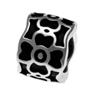 STAINLESS STEEL BEAD IN ROUND SHAPE WITH FLOWER PATTERN WITH BLACK OIL PAINTING IN STEEL COLOR