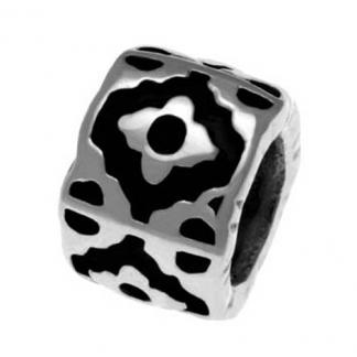 STAINLESS STEEL BEAD IN ROUND SHAPE WITH FLOWER PATTERN WITH BLACK OIL PAINTING IN STEEL COLOR