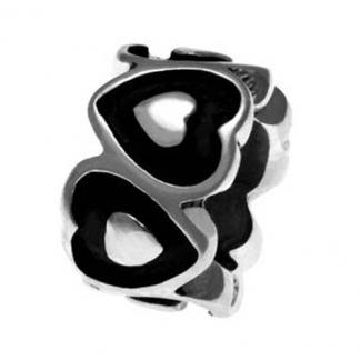 STAINLESS STEEL BEAD IN ROUND SHAPE WITH HEART PATTERN WITH BLACK OIL PAINTING IN STEEL COLOR