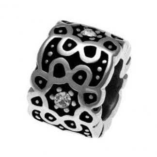 STAINLESS STEEL BEAD IN ROUND SHAPE WITH FLOWER PATTERN WITH CZ WITH BLACK OIL PAINTING IN STEEL COLOR