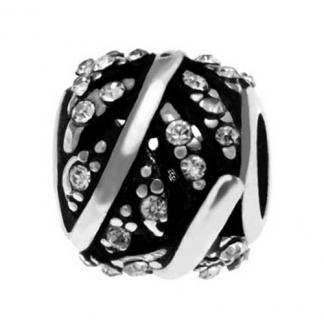 STAINLESS STEEL BEAD IN ROUND SHAPE WITH LEAFS PATTERN WITH CZ WITH BLACK OIL PAINTING IN STEEL COLOR