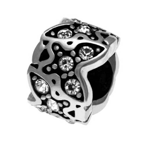 STAINLESS STEEL BEAD IN ROUND SHAPE WITH BUTTERFLY PATTERN WITH CZ WITH BLACK OIL PAINTING IN STEEL COLOR