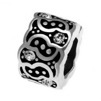 STAINLESS STEEL BEAD IN ROUND SHAPE WITH S PATTERN WITH CZ WITH BLACK OIL PAINTING IN STEEL COLOR