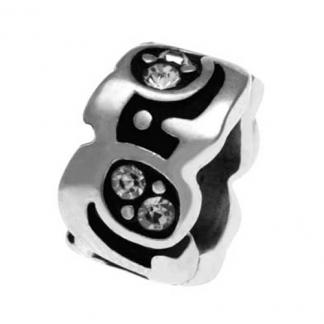 STAINLESS STEEL BEAD IN ROUND SHAPE WITH WHALE PATTERN WITH CZ WITH BLACK OIL PAINTING IN STEEL COLOR