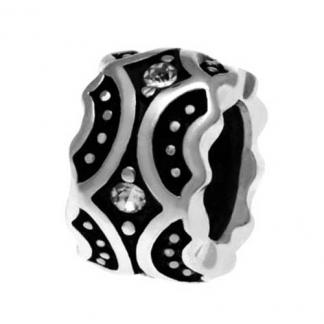 STAINLESS STEEL BEAD IN ROUND SHAPE WITH ARC PATTERN WITH CZ WITH BLACK OIL PAINTING IN STEEL COLOR