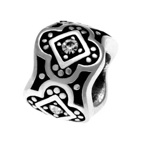 STAINLESS STEEL BEAD IN ROUND SHAPE WITH CROSS PATTERN WITH CZ WITH BLACK OIL PAINTING IN STEEL COLOR
