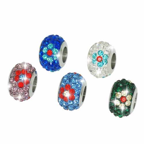 STAINLESS STEEL BEAD IN STEEL COLOR WITH MULTICOLOR CZ IN ROUND SHAPE
