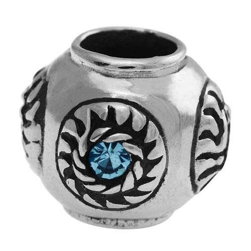 STAINLESS STEEL BEAD IN STEEL COLOR IN ROUND SHAPE WITH BLUE CZ