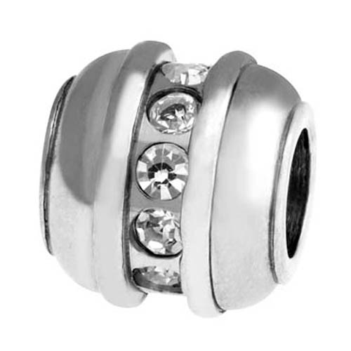 STAINLESS STEEL BEAD IN STEEL COLORIN ROUND SHAPE WITH CZ