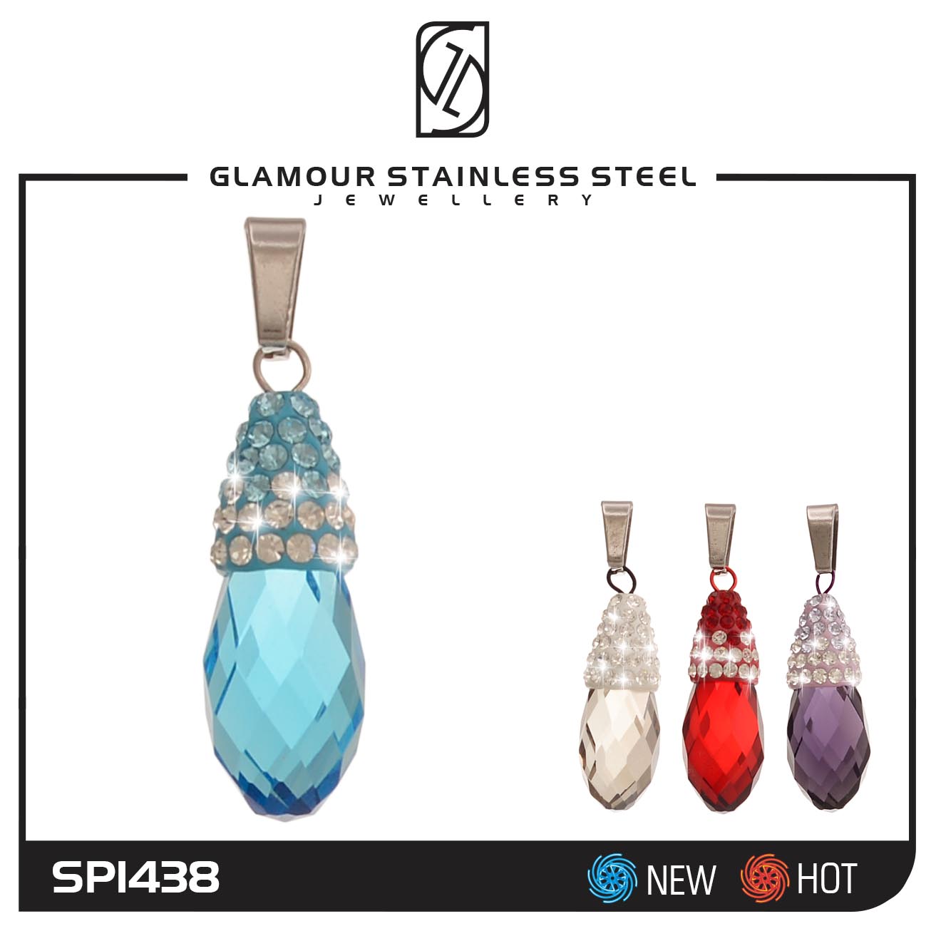 DROP SHAPE PENDANT WITH WHITE STONE IN HEAD WITH SWAROVSKI CRYSTAL IN BLUE