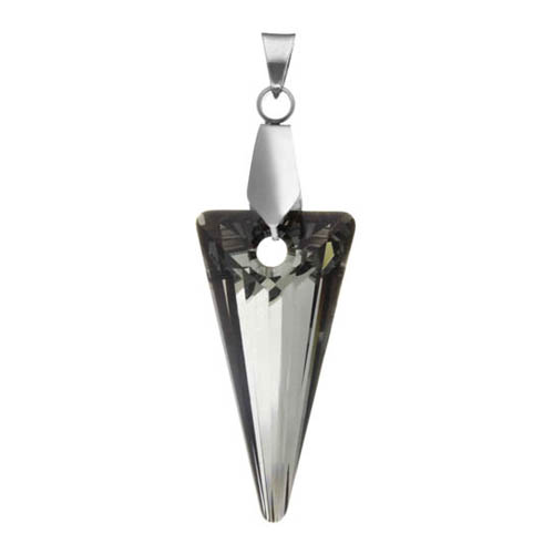 STAINLESS STEEL PENDANT ALL IN S/S COLOR WITH SWAROVSKI CRYSTAL IN BLACK COLOR IN TRIANGLE SHAPE