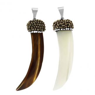 STAINLESS STEEL PENDANT OF STONE IN SHAPE TUSK BROWS AND WHITE WITH CRYSTAL BLACK & WHITE IN S/S COLOR